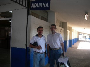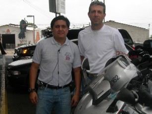 Hoy dia fue uno lleno de muchas experiencias. Quizas no fue uno de muchos kilometros, pero creo que fue fructifero debido a que cruce dos fronteras, la de Guatemala y la del El Salvador. Empece muy temprano con un clima fresco, que en algunos casos daba un poco de frio, aunque nada parecido a los sentidos en EEUU. Aunque la carretera a Tapachula estaba muy buena, debido a que es de noche y los pueblos que se cruzan que te obligan practicamente a parar debido a los reductores de velocidad, estuve cruzando la frontera alrededor de las 9 de la maņana. Cuando me acercaba a la frontera una nube de gente se me acerca ofreciendome ayuda, ofreciendome cambiarme dinero (en Quetzal que es la moneda de Guatemala), cuidarme la moto, etc. Como habia leido un libro orientado a los americanos que quieren viajar a Centro America, donde aconsejan recibir estos servicios porque hacen que los tramites sean mas rapidos, me relaje y deje que me ayudaran. Desgraciadamente no todas la personas son honestas y a mi me toco un par de pillos (los de la primera foto) que intentaron sacarme mas dinero del que se cobra por pasar, lo que no lograron. Igualmente creo que usarlos es beneficiosos, pero siempre atentos para no caer en el engaņo. La primera imagen de Guatemala fue realmente fea, pero a medida que uno avanza en el pais se da cuenta que esa impresion no es realmente la que aplica al resto del pais. En el trayecto y usando la experiencia de preguntar me encontre a un par de motoristas de Guatemala (Osberto era uno de ellos). Como hasta ahora a sido la costumbre en Latino America muy amablemente de dio la indicaciones para seguir como tambien me ofrecio ayuda si asi lo necesitara. Las carreteras en Guatemala estan en muy buenas condiciones, sobre todo la segunda mitad en camino a El Salvador. En un par de horas ya estaba en la frontera donde fue el lugar donde mas tiempo me tomo hacer los tramites (como dos horas). En el lado de Guatemala me encontre con un par de Canadienses que en sus motos BMW piensan llegar a Panama. Los caballeros que con unos 65 aņos aproximadamente demuestran que no hay limite para esta forma de viajar. Ya en el Salvador me encontre con un empresario del Guatemala que estaba tramitando una multa de unos de sus camiones. San Salvador me recibio a las 5:30 de la tarde con mas de 100 km de perfecta autopista. Para maņana segun me indican las carreteras son de la misma calidad y espero poder cumplir con los objetivos planteados. Si me preguntan como estoy yo, les contesto que muy bien. Si preguntan como esta la moto... ella parece preguntarme .. y cuando empezamos el viaje. Les cuento mas maņana. Chau