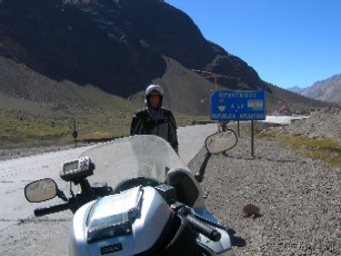Comienza mi ultimo dia. En Antofagasta, Chile el dia anterior, no tome las precauciones de abrigarme y el frio me tuvo a los tiritillos gran parte del dia. Hoy voy a ponerme todo lo que tengo y algo mas con la idea de disfrutar a pleno el cruce de la zona mas alta de la cordillera de los Andes. He dormido bien y me siento muy animado. Es de noche cuando salgo y son las 5:45 de la mañana. La carretera es la misma que lleva a la capital, Santiago, y es una autopista estupenda. Paso varios peajes donde las motos pagan una tercera parte de lo que pagan los autos (algo que voy a tratar de pelear en Puerto Rico, donde las motos pagan lo mismo que los autos). El tramo total es de un poco menos de 700 kilometros y la mayoria sera del lado Chileno. Con la ropa que me puse pude controlar bastante bien el frio y cuando comence el ascenso empece a notar que el calor comenzaba a manifestarse. Solo cambie los guantes que me incomodan bastante. Del lado Chileno empieza el ascenso a traves de una zona llamada Caracoles, que es reconocida por curvas y contracurvas muy pronunciadas. Chile en la mayoria de los trayectos tiene estupendas carreteras, pero el paso cordillerano esta en muy pobres condiciones, especialmente las curvas mas peligrosas donde debo aminorar casi hasta detener la marcha para no dañar la moto. Cuando llego a lo que es el area de migraciones Chilena (Los Libertadores) solo me piden el papel de entrada de la moto, el que me sellan y me indican que todos los tramites se realizan en conjunto entre ambos paises en un puesto del lado Argentino llamado Horcones. Antes de salir de Chile me tomo algunas fotos (las dos primeras), ya que esta vez no tengo apuros. Paso a traves del largo e interminable tunel internacional, que parece no tener fin. Toco un par de bocinas en forma simbolica cuando aparecen las banderitas Argentinas indicando el limite froterizo. Me encuentro a unos 3200 metros de altura y veo la luz del final del tunel. A pocos metros otro cartel me hace detener, el de bienvenida a la Argentina (tercera foto). Se que lo que voy a decir va a sonar parcial, pero he cruzado a lo largo practicamente toda la columna vertebral de Los Andes. He visto paisaje muy lindo, ya sea por su verde o por su contraste entre mar y montaña, pero la imponencia que presenta la cordillera de Los Andes saliendo desde lo mas alto del lado Argentino, con sus montañas de mas de 5000 metros en su mayoria, coronadas por la reina del continente Americano, el cerro Aconcagua (el que subi en el año 1983 tambien en solitario) con casi 7000 metros de altura y sus nieves eternas, no tiene igual. Bajar mirando el cambiante paisaje con cerros de distintos colores (grises, rojos, marrones y en algunos casos amarillo oro), es algo que realmente emociona. Debo sin embargo dejar una pequeña pero importante mancha en este relato. Las carreteras, especificamente en la parte mas alta estan en muy deteriorado estado. Es obvio que en algunos casos han quedado en el olvido. Mas abajo veo con placer que estan siendo reparadas o mejor dicho reasfaltadas, ya que no tienen otra opcion. En un conocido pueblo a mitad de camino (Uspallata) donde recuerdo haber tenido muchas aventuras de montaña y caceria decido quitarme algo de ropa o me iba a deshidratar. Continuo mi viaje donde las carreteras tienen un mix de destruidas con algo en buenas condiciones. Aunque yo habia venido hace algunos años con mis hijos para que vieran estos paisajes, en ese momento la nueva represa de Potrerillos solo tenia un poco de agua. Al acercarme la imagen es hermosa. De un color cielo oscuro se ve un enorme lago que brilla con el fuerte sol del medio dia. Debi parar para sacar unas fotos, pero a la espera de encontrar un lugar seguro (debido al alto riesgo por el paso de camiones) el momento se me va, solo me queda la imagen grabada en mi mente. Lo demas es una carretera nueva por completo, la que tuvo que construirse debido al proyecto del dique. Entro por el acceso sur en direccion al centro de Mendoza. Aqui el calor es fuerte. No se que tanta sorpresa puede haber dado la moto en mi entrada, debido a que solo queria llegar. Paso frente a varios lugares que me traen recuerdos, Ave. Colon donde tuve un negocio, el apartamento de mi querida abuela que voy a visitar, paso por plaza Italia donde hice muchas de mis travesuras de niño y frente a donde estoy hoy, la casa de mis padres y me dirijo a la casa de mi suegro, que es donde dejare la moto para luego ponerla en condiciones. Lo de mas es llegar, abrazarme con mi familia y comentar por varias horas (con unas cervezas e inclusive una botella de Champagne bien fria) muchas de las anecdotas que les he contado. Gracias a todos por seguirme en estos agotadores pero inolvidables dias, admito que estoy emocionado. Solo me queda decir: la travesia terminó...Terminó?